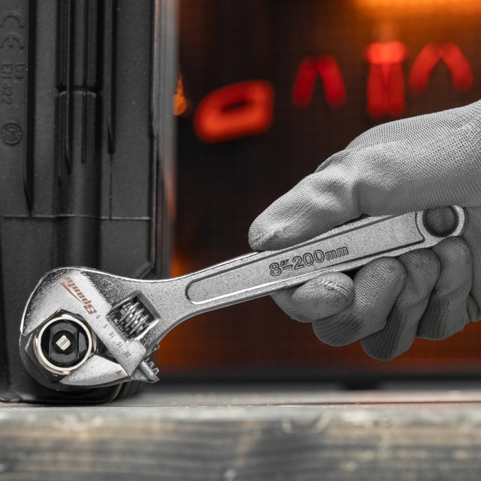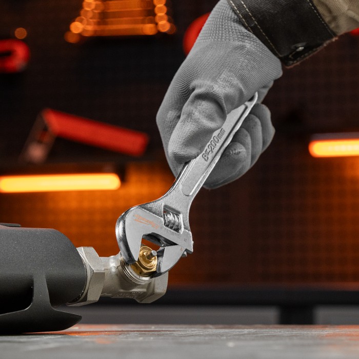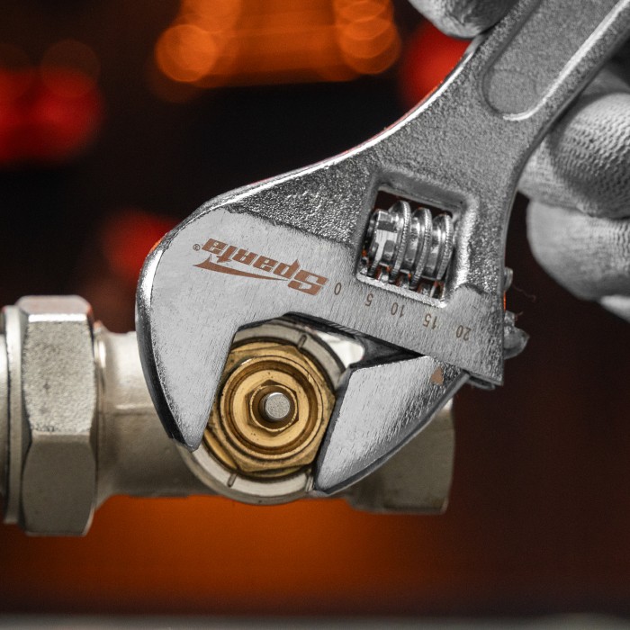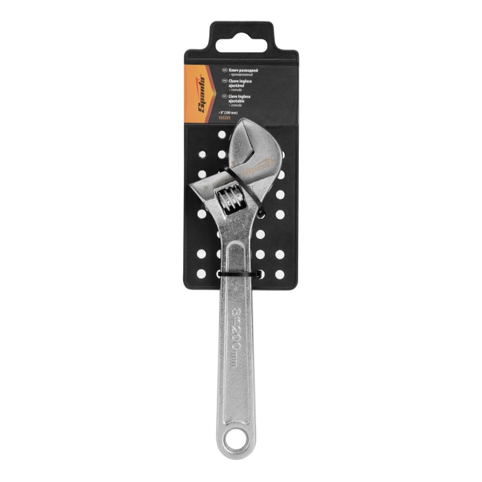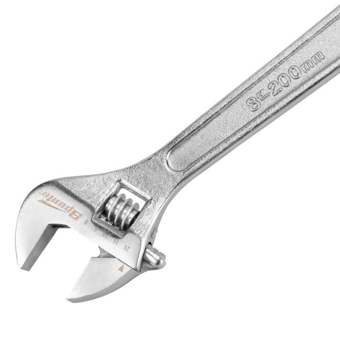 Хромированный разводной ключ Sparta 155255 длиной 200 мм — инструмент для выполнения мелких ремонтных работ. Регулировка размера зева позволяет работать с различными крепежами, в том числе нестандартных размеров. Ключ пригодится слесарям, сантехникам, автомеханикам и начинающим мастерам.ПреимуществаДолгий срок службы — ключ выполнен из инструментальной углеродистой стали 45 и прошел селективную закалку.Антикоррозийная защита — хромовое покрытие предохраняет червячный винтовой механизм от воздействия влаги.Точный захват деталей — на ключ нанесена градуировка, а на подвижную губку — точечная риска.Малый вес 0,218 кг — длительная работа не вызывает дискомфорт.
