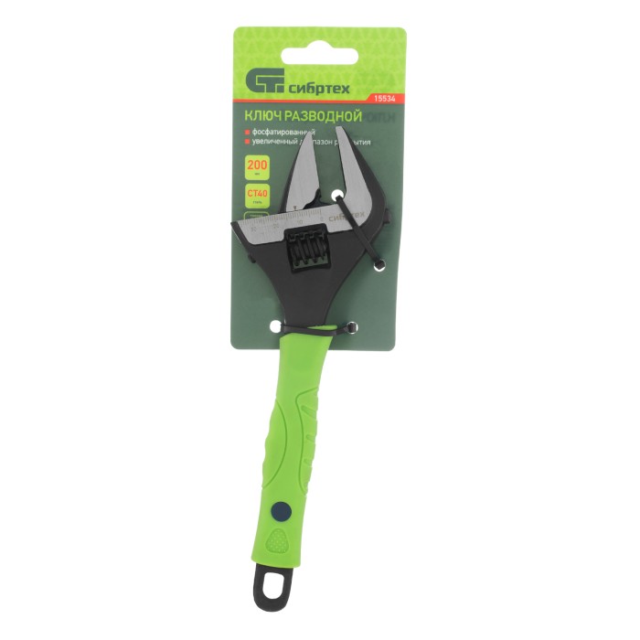 Ключ разводной, 200 мм, тонкие губки, фосфатированый Сибртех