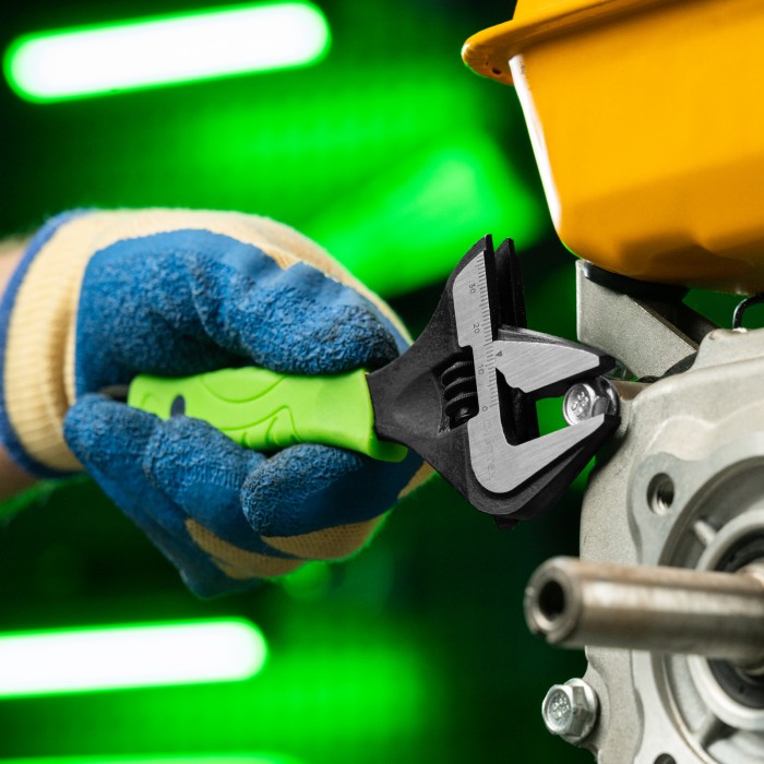 Фосфатированный разводной ключ с тонкими губками Сибртех 15534 длиной 200 мм применяется для монтажа и демонтажа гаек, болтов и других резьбовых соединений. Ширина зева регулируется до 39 мм, что на 30% больше, чем у стандартных разводных ключей, — это позволяет работать как с мелкими, так и с крупными деталями. Тонкие удлиненные губки облегчают работу в труднодоступных местах.ПреимуществаПрочность и износостойкость — ключ изготовлен из углеродистой стали Ст40.Антикоррозионное покрытие — фосфатированная поверхность устойчива к воздействию влаги.Удобная и точная работа — на губки нанесены точечная риска и миллиметровая шкала.Эргономичность — рукоятка с нескользящей накладкой удобно ложится в руку, что снижает усталость при интенсивной работе.