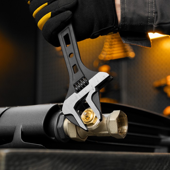 Ключ разводной кованый Denzel 15749 длиной 250 мм, из стали CrV, используется для монтажа и демонтажа крепежных элементов диаметром до 41 мм. Благодаря тонким губкам удобен для работы в труднодоступных местах. Имеет широ...