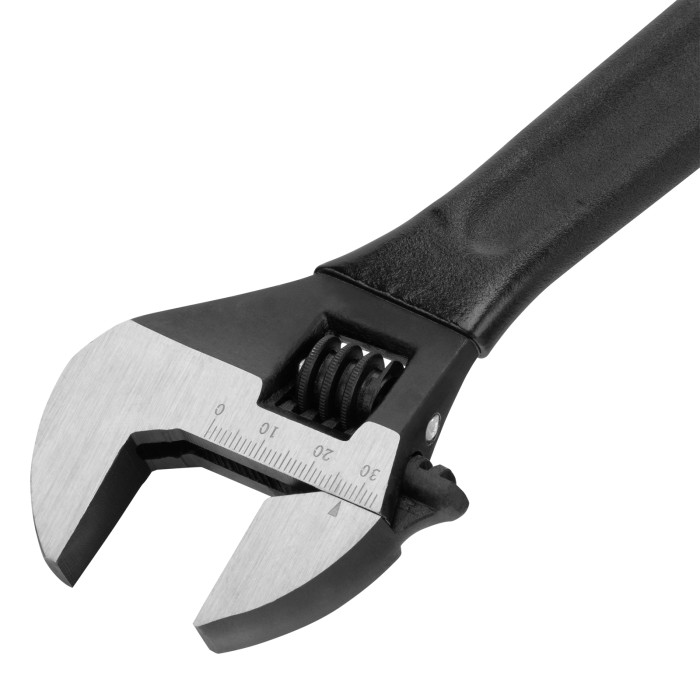 Разводной ключ Matrix 15505 длиной 250 мм используется для монтажа и демонтажа крепежных элементов. Заменяет собой целый комплект обычных гаечных ключей. Губки можно разводить на точно заданное расстояние, что позволяет захватывать детали различного размера. Разводной ключ пригодится для проведения слесарных, сантехнических, ремонтных работ.ПреимуществаПрочность — ключ изготовлен из высококачественной углеродистой стали 45 и прошел селективную закалку.Коррозионная стойкость — фосфатное покрытие защищает червячный винтовой механизм от воздействия влаги.Точность выполняемых работ — на губках имеется градуировка и точечная риска.Эргономичность — обливная рукоятка удобно ложится в руку и имеет отверстие для подвесного хранения.