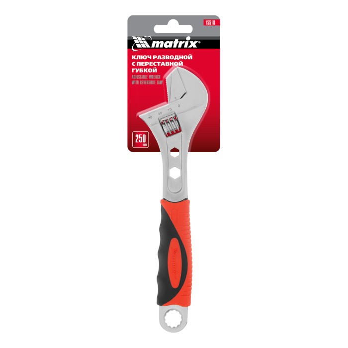 Ключ разводной, 250 мм, переставная губка, двухкомпонентная рукоятка Matrix