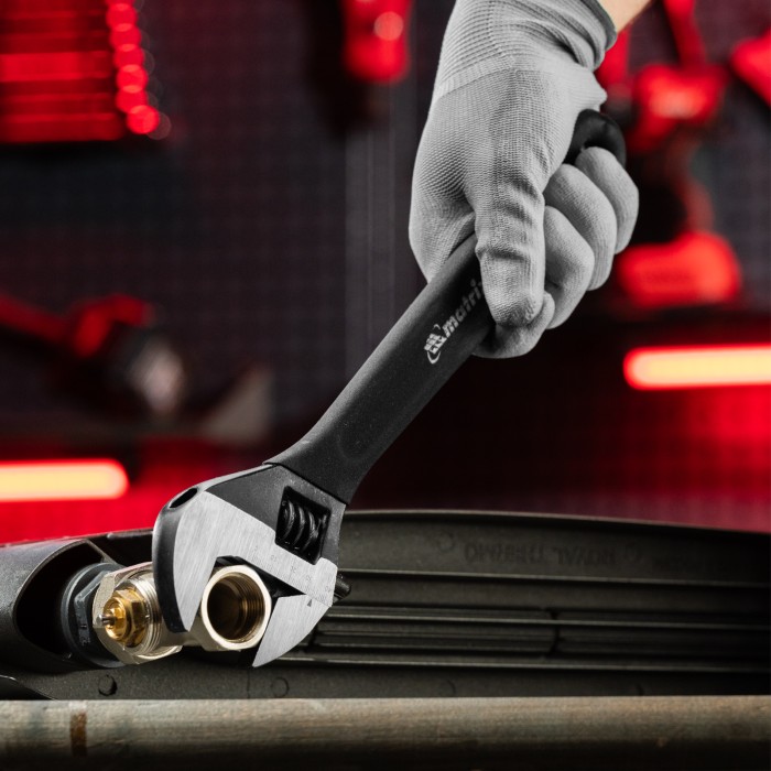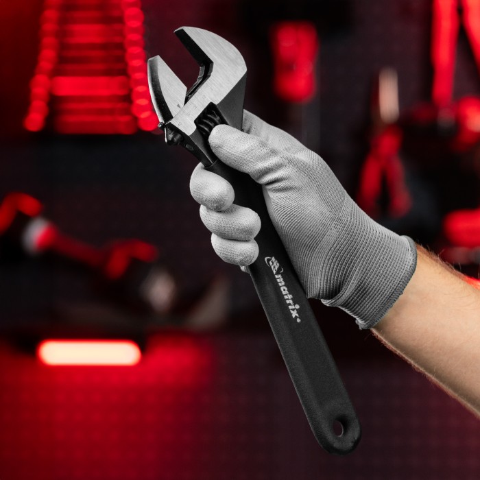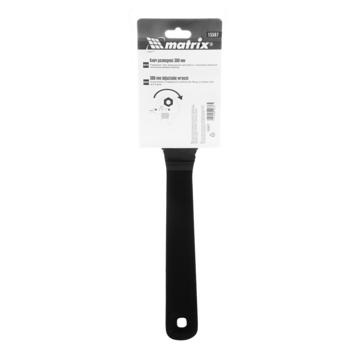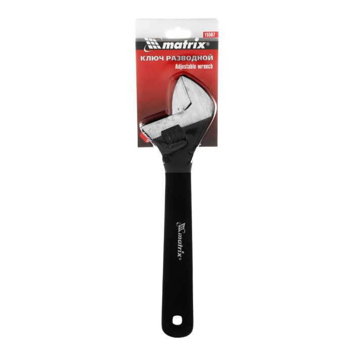 Разводной ключ Matrix 15507 длиной 300 мм используется для монтажа и демонтажа крепежных элементов. Заменяет собой целый комплект обычных гаечных ключей. Губки можно разводить на точно заданное расстояние, что позволяет захватывать детали различного размера. Разводной ключ пригодится для проведения слесарных, сантехнических, ремонтных работ.ПреимуществаПрочность — ключ изготовлен из высококачественной углеродистой стали 45 и прошел селективную закалку.Коррозионная стойкость — фосфатное покрытие защищает червячный винтовой механизм от воздействия влаги.Точность выполняемых работ — на губках имеется градуировка и точечная риска.Эргономичность — обливная рукоятка удобно ложится в руку и имеет отверстие для подвесного хранения.