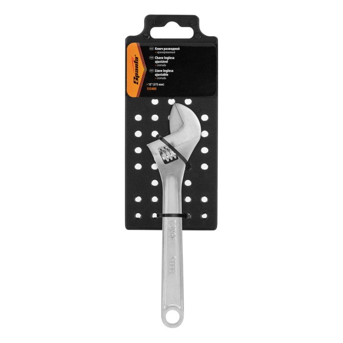Хромированный разводной ключ Sparta 155405 длиной 375 мм — инструмент для выполнения мелких ремонтных работ. Регулировка размера зева позволяет работать с различными крепежами, в том числе нестандартных размеров. Ключ пр...