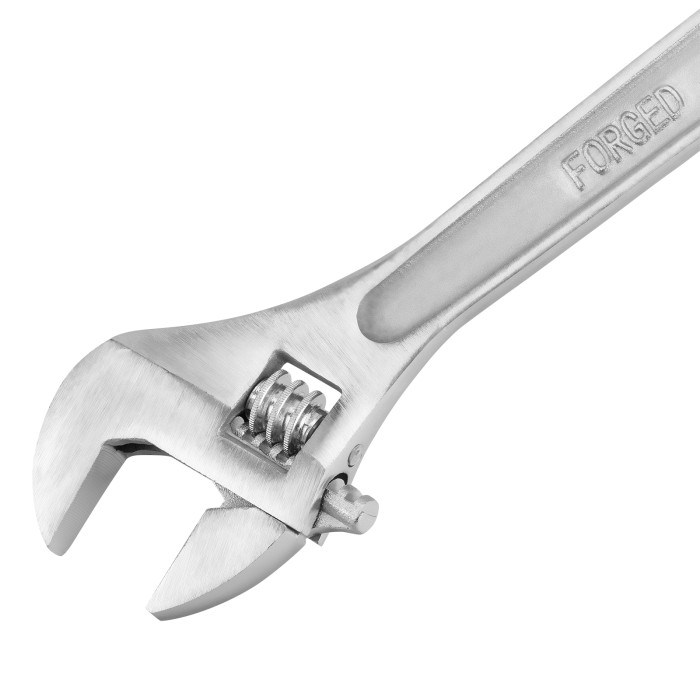 Хромированный разводной ключ Sparta 155405 длиной 375 мм — инструмент для выполнения мелких ремонтных работ. Регулировка размера зева позволяет работать с различными крепежами, в том числе нестандартных размеров. Ключ пригодится слесарям, сантехникам, автомеханикам и начинающим мастерам.ПреимуществаДолгий срок службы — ключ выполнен из инструментальной углеродистой стали 45 и прошел селективную закалку.Антикоррозийная защита — хромовое покрытие предохраняет червячный винтовой механизм от воздействия влаги.Точный захват деталей — на ключ нанесена градуировка, а на подвижную губку — точечная риска.