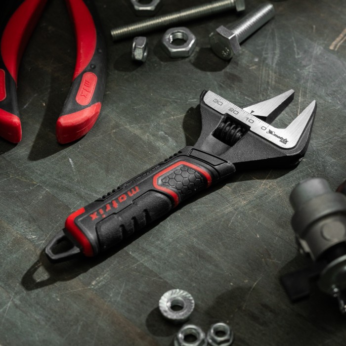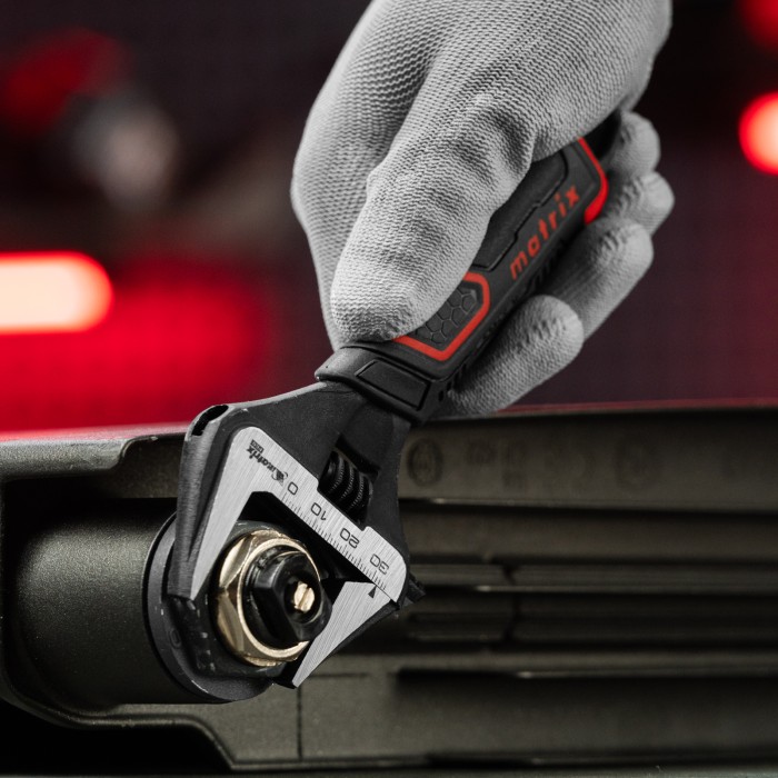 Фосфатированный разводной ключ Matrix PRO 15576 длиной 150 мм, с тонкими губками и двухкомпонентной рукояткой, — профессиональный инструмент, применяется для монтажа и демонтажа крепежных элементов и работы с узкими фити...