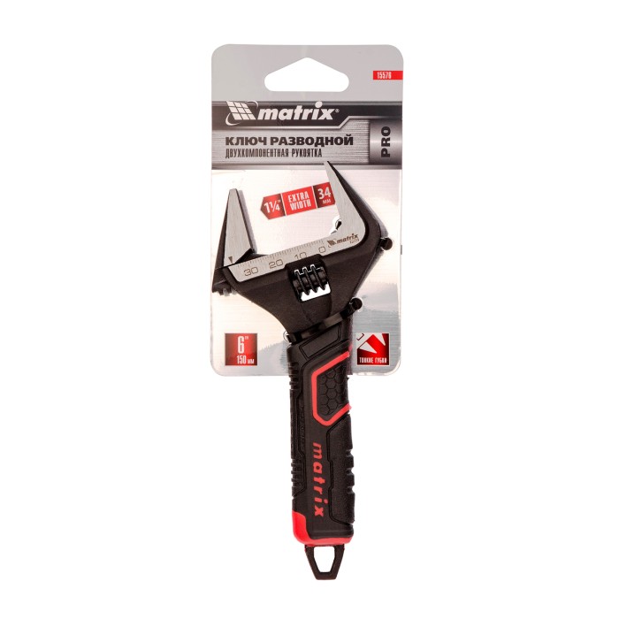 Ключ разводной, тонкие губки, фосфатированный, двухкомпонентная рукоятка, 150 мм, PRO Matrix