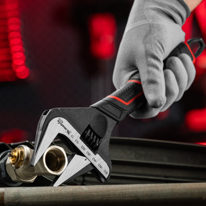 Фосфатированный разводной ключ Matrix PRO 15579 длиной 300 мм, с тонкими губками и двухкомпонентной рукояткой, — профессиональный инструмент, применяется для монтажа и демонтажа крепежных элементов и работы с узкими фитингами. Максимальная ширина раскрытия губок составляет 60 мм, что позволяет работать с деталями разного размера. Благодаря удлиненным тонким губкам инструмент удобен для работы в труднодоступных местах.ПреимуществаНадежность и долговечность — ключ изготовлен из прочной стали 40 CrV, губки закалены до твердости 50 HRC и выдерживают высокие нагрузки.Защита от коррозии — фосфатированная поверхность устойчива к воздействию влаги.Комфортное использование — двухкомпонентная рукоятка не выскальзывает из ладони, даже если работать без перчаток.