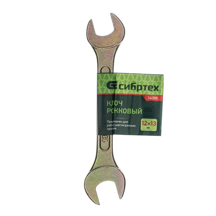 Рожковый ключ Сибртех 14305 с покрытием из желтого цинка имеет две рабочие части с размером зева 12 и 13 мм и предназначен для закручивания и откручивания резьбовых крепежей с шестигранными головками. Губки расположены п...