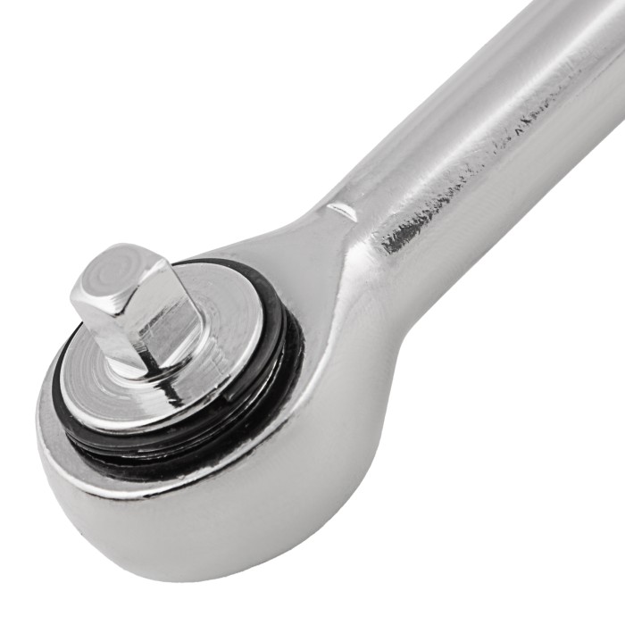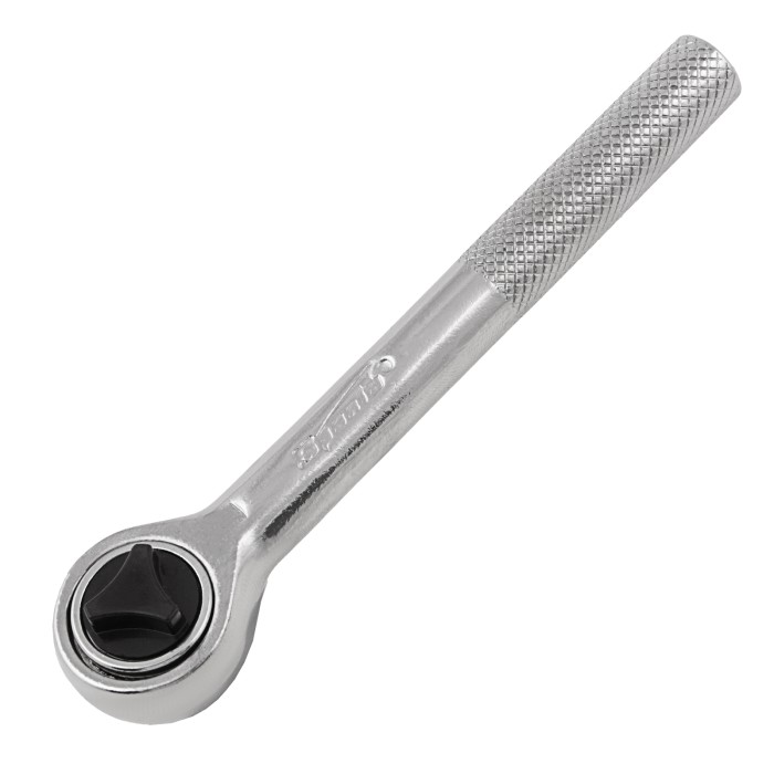 Ключ-трещотка Sparta 140205 из стали CrV, с присоединительным квадратом 1/4" и переключателем, применяется для монтажа и демонтажа болтов и гаек при помощи торцевых головок. Храповой механизм облегчает работу в ограниченном пространстве. Инструмент пригодится в ремонтной мастерской, автосервисе, а также дома или на даче.ПреимуществаВысокий показатель прочности и износостойкости — ключ изготовлен из хромованадиевой стали.Надежная защита от коррозии — поверхность ключа хромирована.Переключатель реверса — можно быстро изменить направление вращения.Функция быстрого сброса — для замены насадки требуется всего несколько секунд.Надежная фиксация насадки — благодаря шариковому фиксатору она не отскакивает во время работы.Комфортная работа — рукоятка с рельефной поверхностью не выскальзывает из ладони.