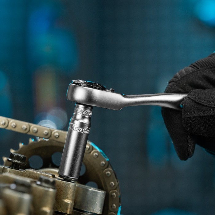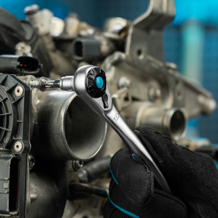 Трещоточный ключ Gross 14135 с присоединительным квадратом 1/4 дюйма предназначен для работ с резьбовыми соединениями. Храповый механизм со 120 зубцами обеспечивает исключительно плавный ход. Инструмент оптимален для работы с труднодоступными крепежами — шаг трещотки составляет всего 3 градуса. Ключ подойдет для ремонта компактной техники, велосипедов, монтажа оборудования, пригодится также дома, в гараже или на даче.ПреимуществаКлюч изготовлен из высококачественной стали хромованадиевой группы и имеет цельнокованый корпус, что обеспечивает повышенную прочность и износостойкость инструмента.Во время работы насадка надежно удерживается присоединительным квадратом 1/4 дюйма с шариковым фиксатором.Ключ снабжен кнопкой быстрого сброса, позволяющей заменить насадку за несколько секунд.При помощи флажкового переключателя можно моментально изменить направление вращения трещотки.Механизм свободного вращения упрощает работу с крепежными элементами.Рукоятка оригинальной формы обеспечивает комфортность использования ключа.