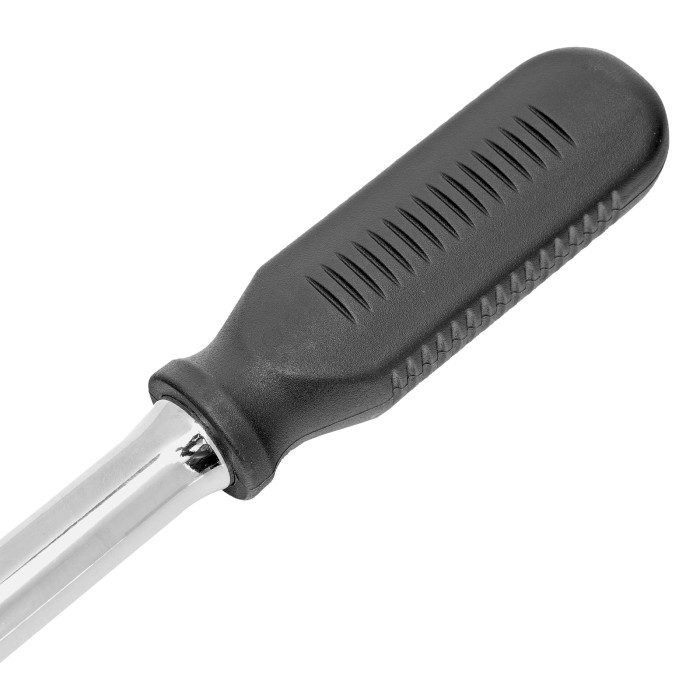 Хромированный ключ-трещотка Сибртех 14002 из стали CrV, с посадочным размером 3/8″ и 45-зубым храповым механизмом, с функцией быстрого сброса, используется для работы с резьбовым крепежом. Трещоточный механизм с 45 зубья...