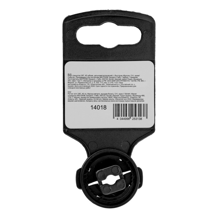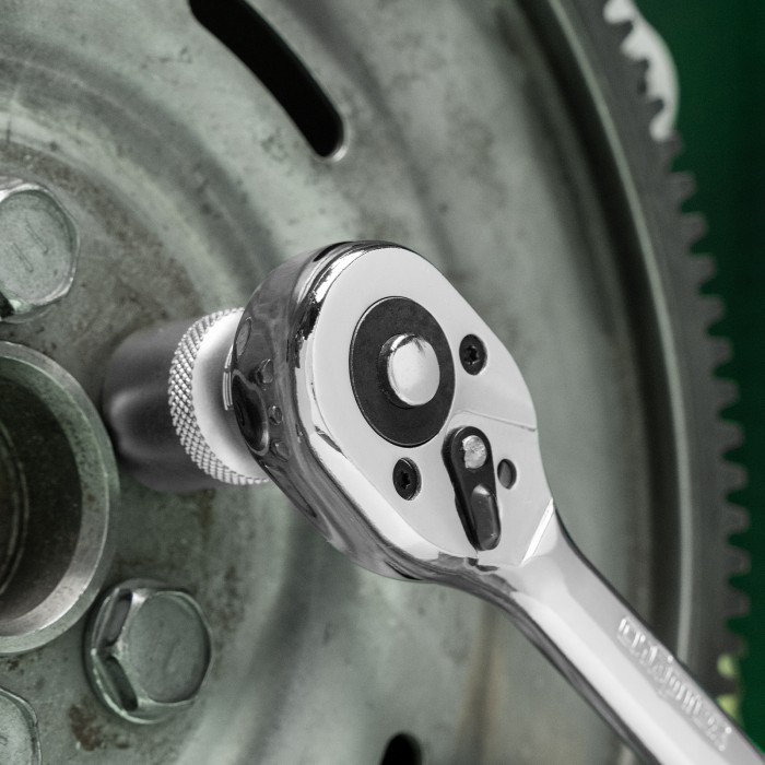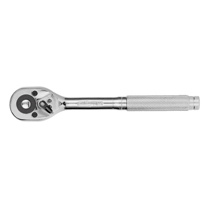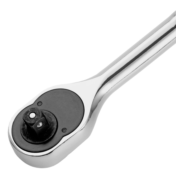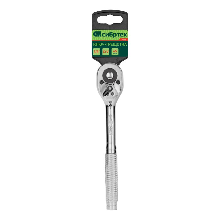 Цельнометаллический хромированный ключ-трещотка Сибртех 14018 из стали CrV, с посадочным размером 3/8″ и 45-зубым храповым механизмом, с функцией быстрого сброса, используется для монтажа и демонтажа резьбовых соединений...