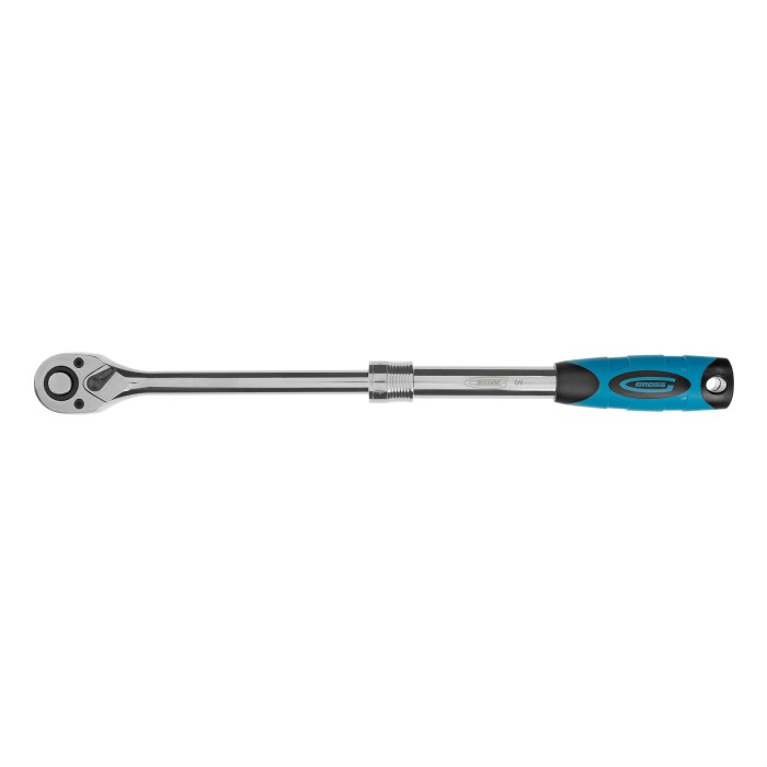 Ключ-трещотка телескопический 1/2", 305-445 мм, CrV, 72 зуба, с быстрым сбросом, хром Gross