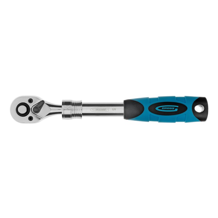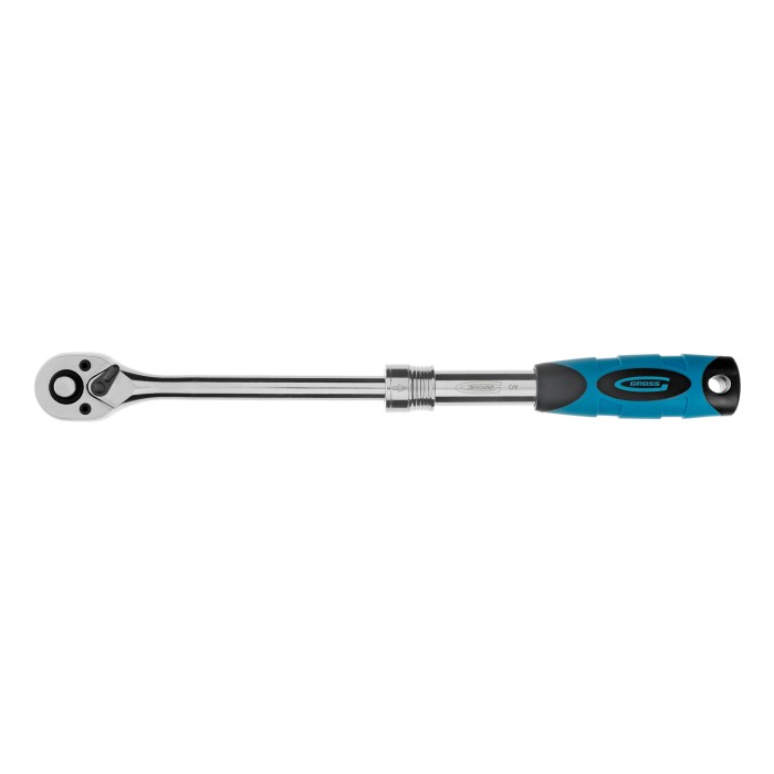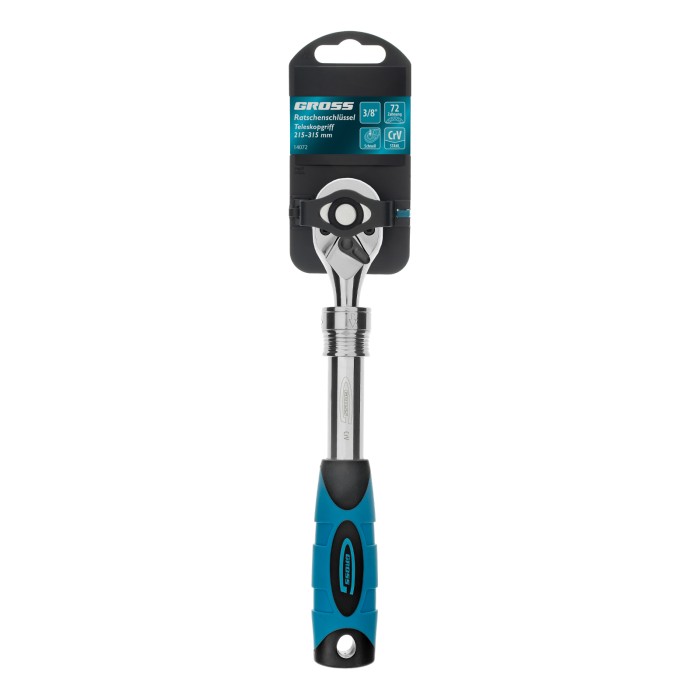 Ключ-трещотка телескопический 3/8", 215-315 мм, CrV, 72 зуба, с быстрым сбросом, хром Gross