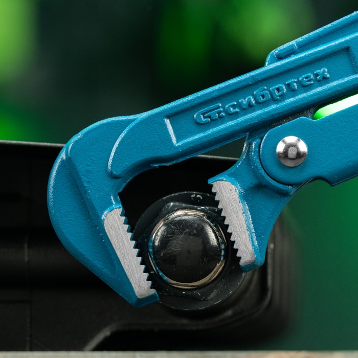 Кованый трубный рычажный ключ Сибртех №2 15759, тип «L», используется для захвата и вращения труб диаметром 1,5″, а также других деталей со специальным профилем и без него. Рычажный механизм увеличивает рабочее усилие, снижая нагрузку на руки мастера. Инструмент рассчитан на бытовое и профессиональное применение.ПреимуществаПрочность и долговечность — кованая конструкция из закаленной легированной стали устойчива к нагрузке кручения, губки закалены до твердости 48-52 HRC.Надежная фиксация — на регулировочном механизме с гайкой имеется стопорное кольцо.Прочный захват — зубья прогрессивной формы наклонены против направления вращения.Защита от коррозии — на инструмент нанесено порошковое покрытие.