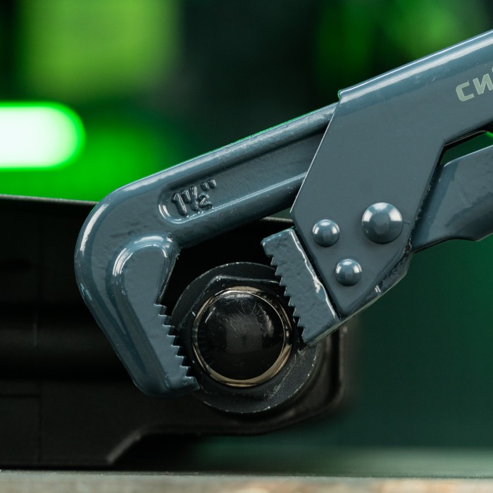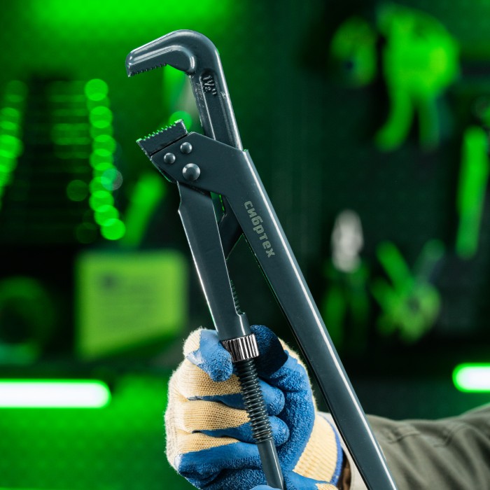 Кованый трубный рычажный ключ Сибртех №2 15771, тип «L», используется для захвата и вращения труб диаметром 1.5", а также других деталей со специальным профилем и без него. Рычажный механизм увеличивает рабочее усилие, с...