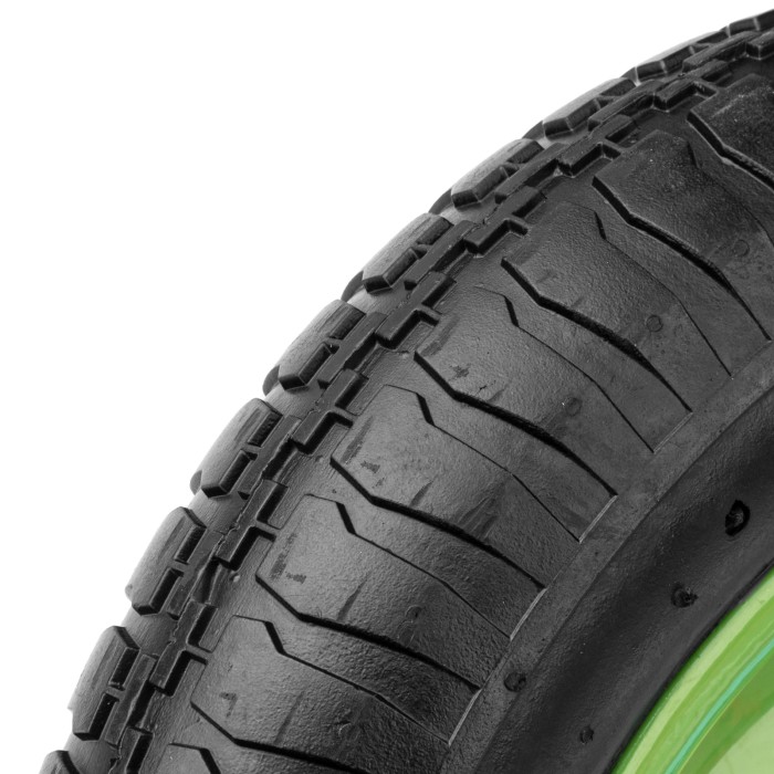 Пневматическое колесо 3.00-8 Сибртех 68972 с длиной оси 90 мм и посадочным диаметром подшипника 20 мм помогает осуществить транспортировку грузов по участку. Подходит к тачкам Сибртех 68962 и 689625. Колесо с двумя стальными шариковыми подшипниками обеспечивает плавный ход тачки даже на неровном грунте.ПреимуществаНадежность — благодаря стальному диску со сплошным сварным швом колесо выдерживает интенсивную эксплуатацию.Коррозионная стойкость — порошковое покрытие обода надежно защищает от разрушения.Возможность использования в помещении — резиновая шина не деформирует покрытие пола.Удобная эксплуатация — бесшумное пневматическое колесо поглощает вибрацию, поэтому перемещение грузов не вызывает дискомфорт.
