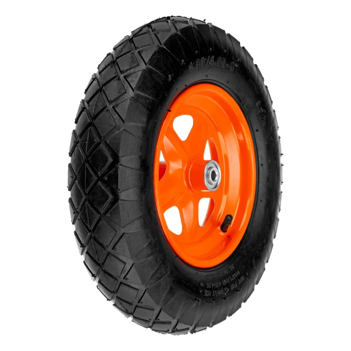 Пневматическое колесо 4,80/4,00-8 Palisad «Звезда» 689465 диаметром 380 мм имеет длину оси 80 мм и внутренний диаметр подшипника 12 мм, устанавливается на тачку Palisad 68912 для транспортировки грузов. Обладает хорошей ...