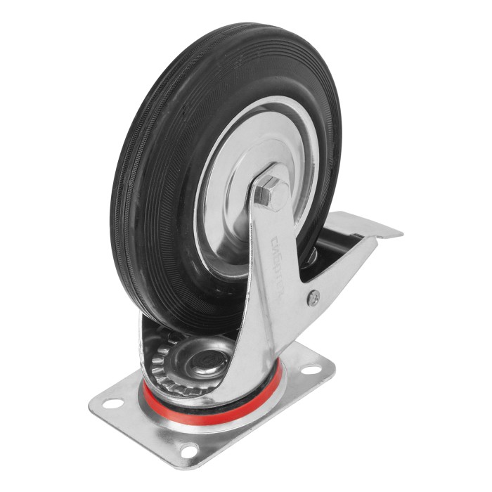 Колесо поворотное с тормозом D 125 мм, крепление платформенное Сибртех