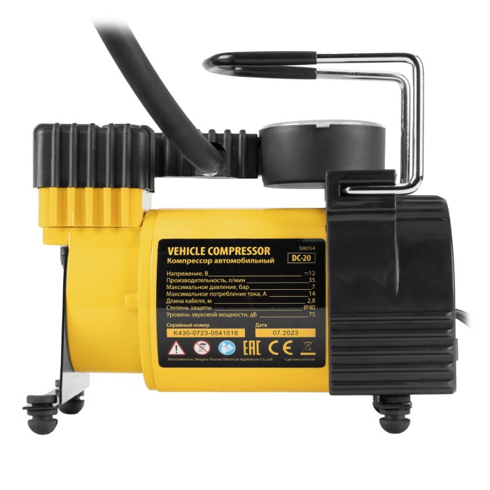 Автомобильный компрессор Denzel DC-20 58054 производительностью 35 л/мин работает от источника питания 12 В, создает давление 7 атмосфер и используется для быстрого накачивания шин автомобильных колес. Благодаря увеличен...