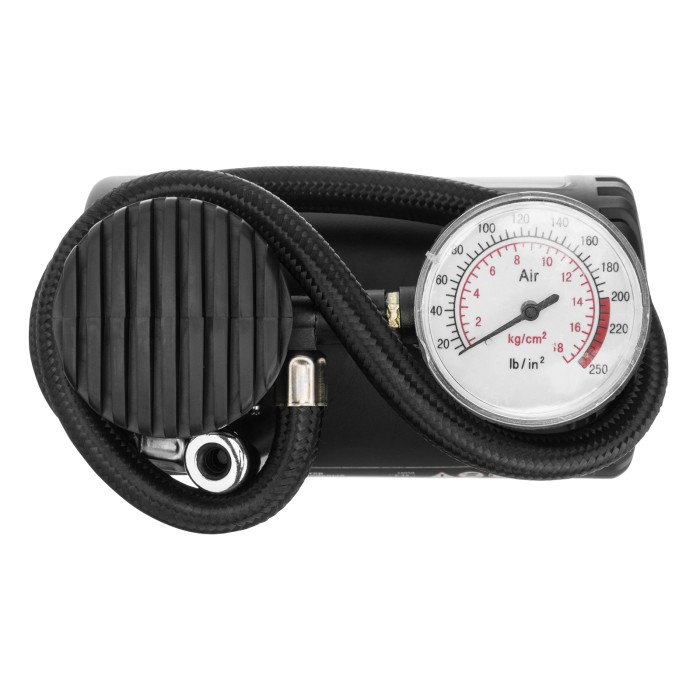 Автомобильный компрессор Sparta C-12 58050 производительностью 12 л/мин обеспечивает давление до 17 атмосфер и питается от прикуривателя 12 В. Используется для накачки шин, а также мячей, матрасов, лодок и другого инвент...
