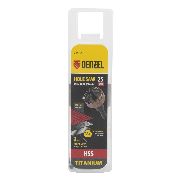 Коронка Denzel 724104 диаметром 25 мм, из стали HSS, с нитридтитановым покрытием, применяется для сверления отверстий в черных, цветных металлах, пластике и других материалах. Рассчитана на профессиональное использование...