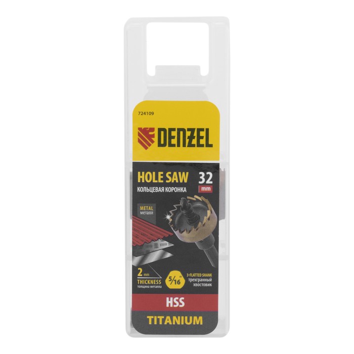 Коронка Denzel 724109 диаметром 32 мм, из стали HSS, с нитридтитановым покрытием, применяется для сверления отверстий в черных, цветных металлах, пластике и других материалах. Рассчитана на профессиональное использование...