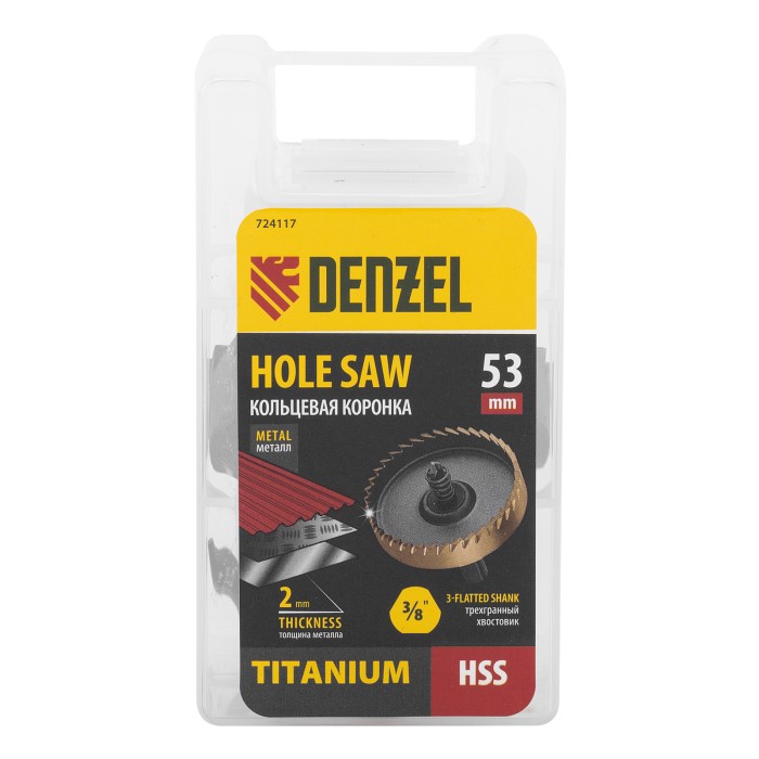 Коронка Denzel 724117 диаметром 53 мм, из стали HSS, с нитридтитановым покрытием, применяется для сверления отверстий в черных, цветных металлах, пластике и других материалах. Рассчитана на профессиональное использование...