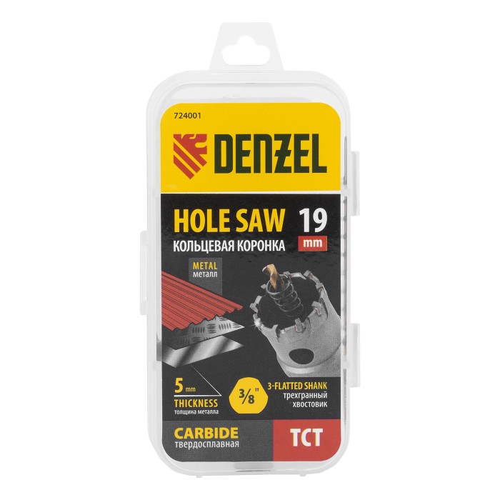 Коронка по металлу твердосплавная, 19 мм Denzel