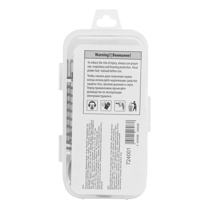 Твердосплавная коронка Denzel 724001 диаметром 19 мм используется для сверлильных работ по черным, цветным металлам, пластику и другим материалам. Позволяет получить отверстия большего диаметра в сравнении с обычным сверлом. Твердосплавные зубья легко выдерживают интенсивные нагрузки, поэтому коронка подходит не только для бытового, но и для профессионального применения.ПреимуществаПрочность — твердосплавные режущие пластины выполнены из сплава карбид-вольфрама, а корпус — из углеродистой стали.Эффективность — режущие пластины твердостью 91-92 HRC и центрирующее сверло из быстрорежущей легированной стали обеспечивают высокую скорость и качество засверливания.Высокая производительность — специальная пружина не допускает застревания шлама.Крепкая фиксация — трехгранный хвостовик не прокручивается в патроне.Надежность — коронка изготовлена на современном оборудовании методом электросварки.