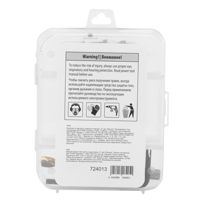 Твердосплавная коронка Denzel 724013 диаметром 41 мм используется для сверлильных работ по черным, цветным металлам, пластику и другим материалам. Позволяет получить отверстия большего диаметра в сравнении с обычным сверлом. Твердосплавные зубья легко выдерживают интенсивные нагрузки, поэтому коронка подходит не только для бытового, но и для профессионального применения.ПреимуществаПрочность — твердосплавные режущие пластины выполнены из сплава карбид-вольфрама, а корпус — из углеродистой стали.Эффективность — режущие пластины твердостью 91-92 HRC и центрирующее сверло из быстрорежущей легированной стали обеспечивают высокую скорость и качество засверливания.Высокая производительность — специальная пружина не допускает застревания шлама.Крепкая фиксация — трехгранный хвостовик не прокручивается в патроне.Надежность — коронка изготовлена на современном оборудовании методом электросварки.