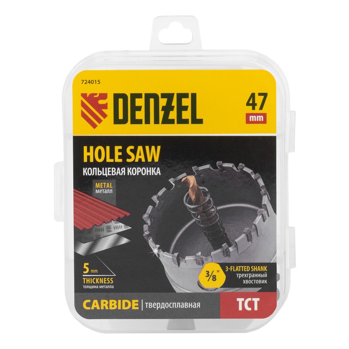Коронка по металлу твердосплавная, 47 мм Denzel