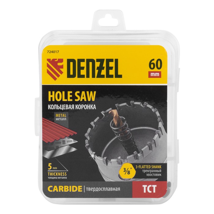 Коронка по металлу твердосплавная, 60 мм Denzel