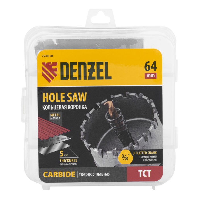 Коронка по металлу твердосплавная, 64 мм Denzel