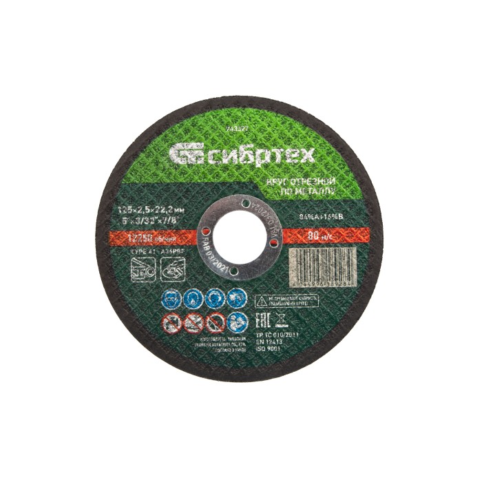 Отрезной круг по металлу Сибртех 84%A+16%B 743327 размером 125 х 2,5 мм устанавливается на фланец ручной углошлифовальной машины с посадочным размером 22,2 мм. Предназначен для резки углеродистых сталей. Круг пригодится ...