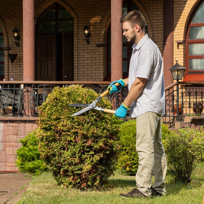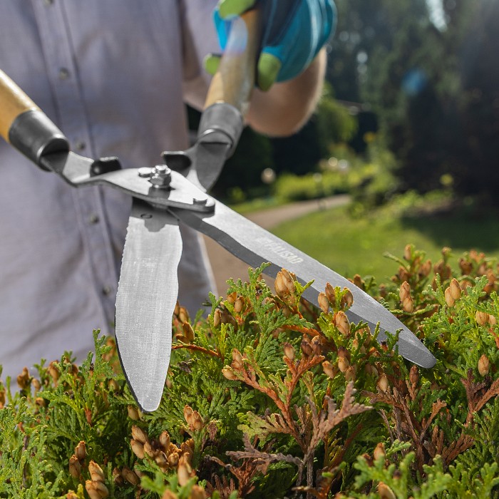 Кусторез Palisad 608375 длиной 520 мм, с волнистыми лезвиями и деревянными рукоятками, легко справляется с обрезкой молодых веток диаметром до 10 мм. Волнистые лезвия оптимальны для срезания веток с гладкой корой. Кусторез будет полезен садоводам, т. к. позволяет поддерживать кустарники и живые изгороди в аккуратном виде.ПреимуществаПрочность — лезвия выполнены из среднеуглеродистой стали методом холодного штампования.Высокий ресурс — режущие кромки закалены индукционными токами высокой частоты и заточены на заводе, рукоятки покрыты лаком для защиты от воздействия влаги.Антикоррозионное масляное покрытие — лезвия защищены от разрушения и легко справляются со срезанием веток.Надежная конструкция — встроенный ограничитель сжатия предотвращает поломку инструмента при работе с большим усилием.Комфортное использование — деревянные рукоятки удобно лежат в руках, уменьшая усталость при длительной работе.