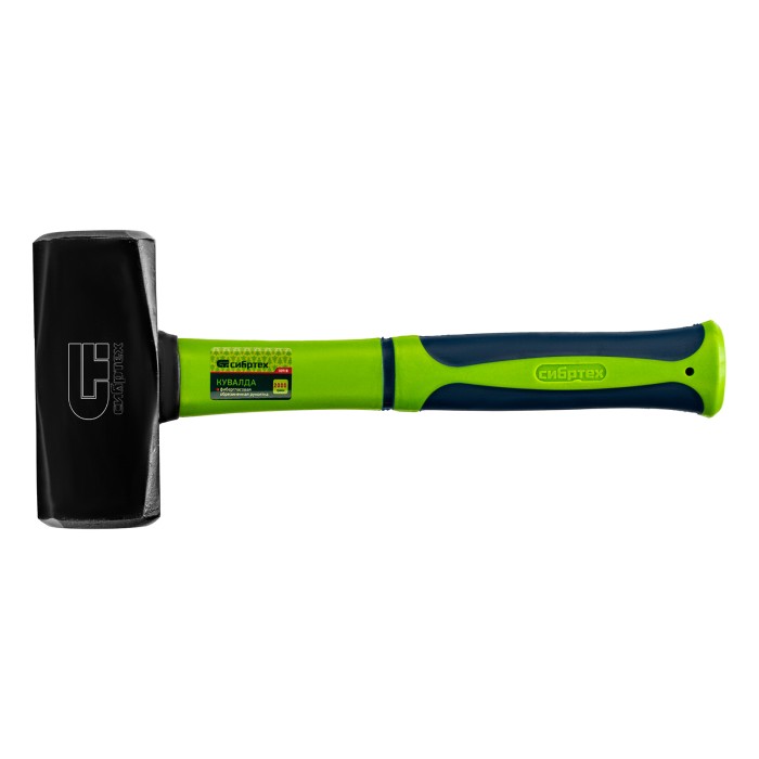 Кувалда Сибртех 10918 с бойком весом 2000 г и фибергласовой обрезиненной рукояткой, общей длиной 280 мм, предназначена для нанесения аккуратных и точных ударов. Применяется для забивания метизов, выравнивания или сгибания металлических поверхностей. Устойчива к деформациям и долговечна благодаря бойку, изготовленному методом ковки и отшлифованному с двух сторон. Кувалда подходит для использования в полупрофессиональной и бытовой сфере.ПреимуществаПрочность и надежность — боек изготовлен из среднеуглеродистой стали 45, а рабочие части закалены токами высокой частоты до твердости 40-45 HRC. Устойчивость к коррозии — рабочая часть кувалды покрыта черным лаком.Надежная фиксация рукоятки — место крепления залито прочной смолой, не позволяющей бойку соскочить.Безопасность — на ударных поверхностях сняты фаски, поэтому от головы не отколются мелкие кусочки во время работы.Низкая отдача — вибрация от ударов поглощается двухкомпонентной пластиковой рукояткой с фибергласовым стержнем.Комфортная работа — рукоятка с резиновой вставкой не выскальзывает из ладони.