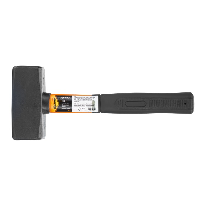 Кувалда Sparta 10917 общей длиной 300 мм, с фибергласовой обрезиненной рукояткой и бойком весом 2000 г, — слесарный сборочный инструмент, предназначенный для нанесения несильных точных и аккуратных ударов. Используется для забивания крупных гвоздей или скоб, сгибания и придания формы предметам, а также демонтажных работ. Слегка выпуклый и отшлифованный с обеих сторон кованый боек отличается прочностью и надежностью, а благодаря пластиковой рукоятке кувалда готова к работе в любой момент. Инструмент применяется в быту, пригодится также на стройплощадке или в автосервисе.ПреимуществаПрочность и устойчивость к деформации — голова кувалды изготовлена из среднеуглеродистой стали 45, а ударные поверхности закалены токами высокой частоты до твердости 40-45 HRC.Безопасная работа — рукоятка надежно вклеена в голову при помощи прочной эпоксидной смолы, на гранях бойка сняты фаски, что предотвращает откалывание мелких частиц при ударе.Антикоррозийная защита — на боек нанесено черное лаковое покрытие.Надежная рукоять — фибергласовый стержень отличается прочностью и жесткостью.Эргономичность — рукоятка амортизирует отдачу, а благодаря резиновой поверхности с рифлением не выскальзывает из ладони.