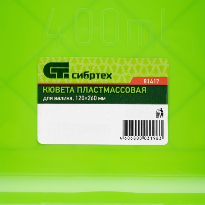 Кювета пластмассовая для валиков, 120 x 260 мм, Сибртех