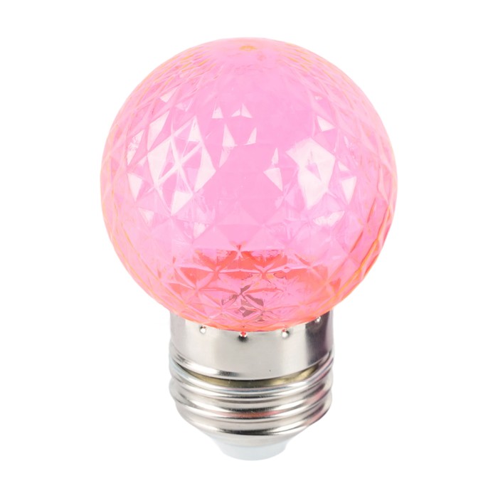 Лампа светодиодная FERON LB-385, G45 (шар), 1W 230V E27 (розовый), рассеиватель прозрачный розовый, угол рассеивания 270°, корпус пластик, 68*45мм...