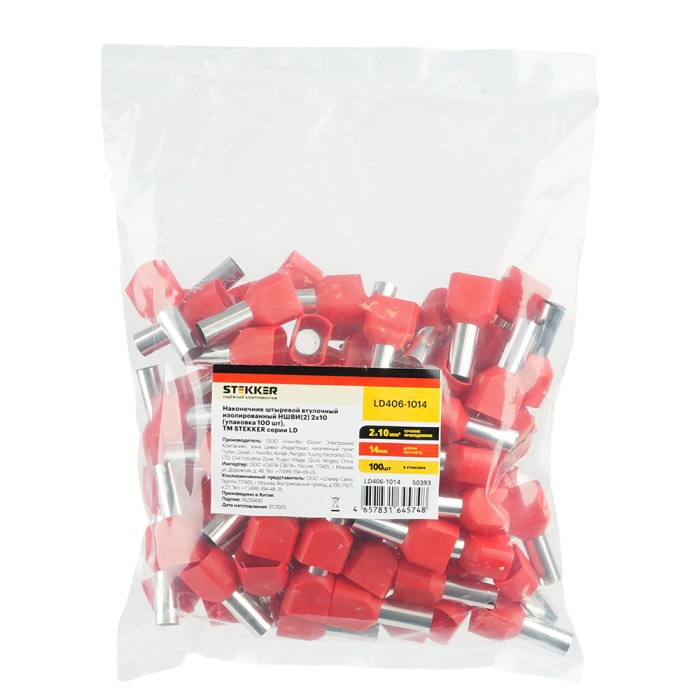 LD406-1014 Наконечник штыревой втулочный изолированный НШВИ(2) 10-14 (упаковка 100 шт) 50393