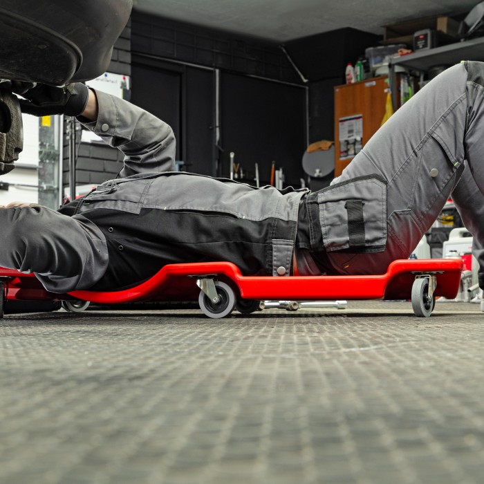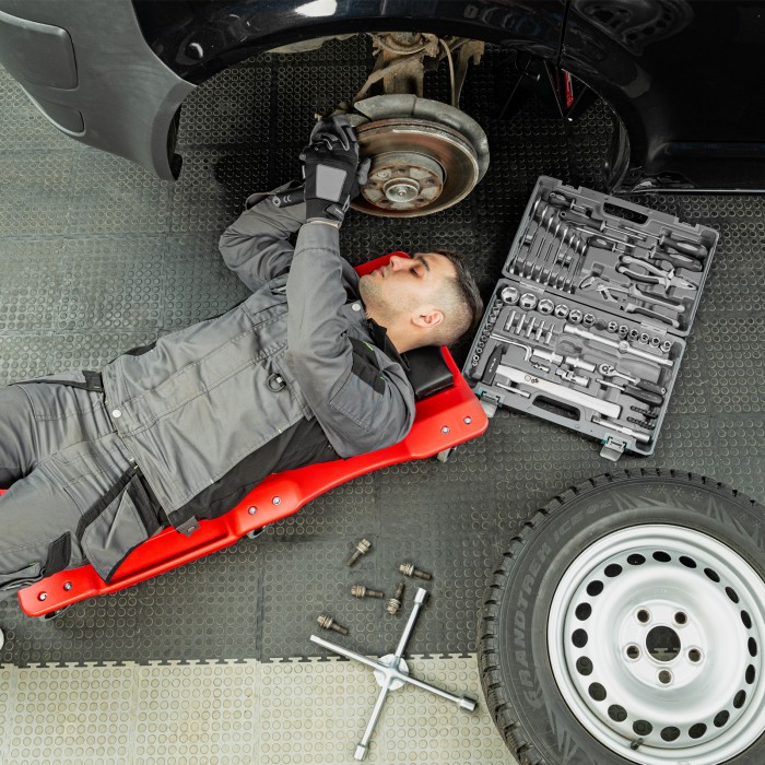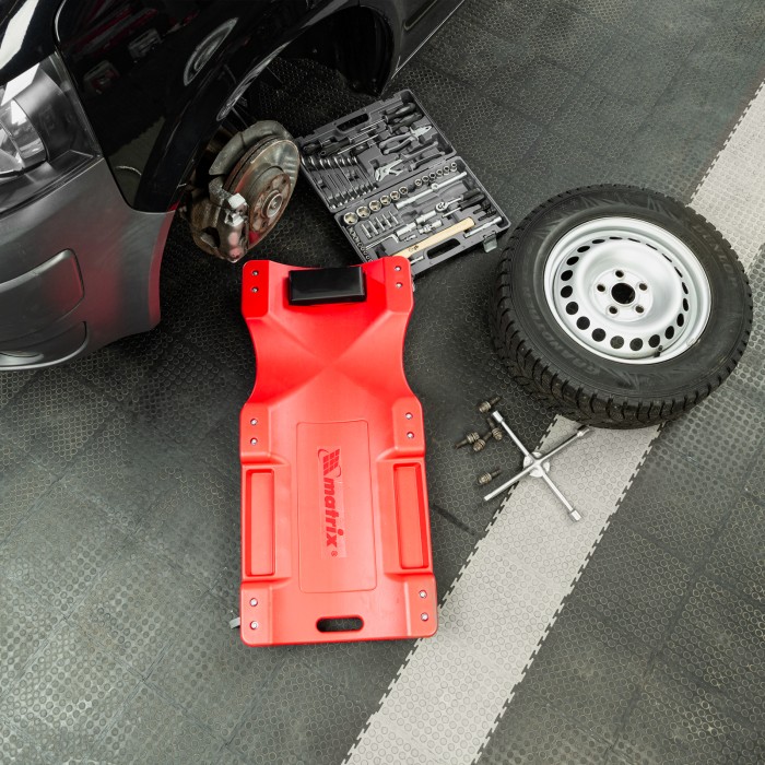Лежак ремонтный на 6-ти колесах Matrix 567485, 1000 х 475 х 128 мм, пластиковый, облегчает работу при проведении ремонта в нижней части авто. Он будет полезен для автолюбителей в гараже. А благодаря двум встроенным инстр...