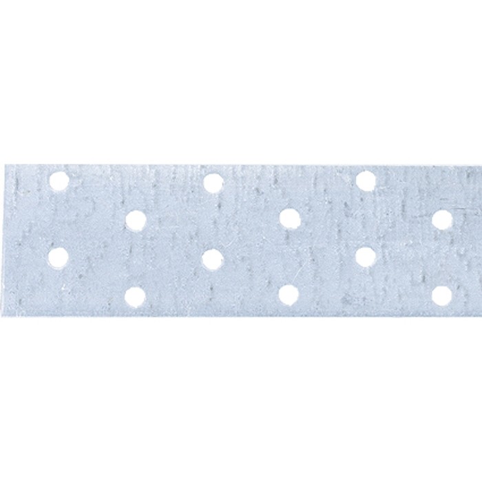 Перфорированная монтажная лента Сибртех 46547 с покрытием из цинка, толщиной 2 мм, шириной 10 см и длиной 10 м, с отверстиями диаметром 4,5-5 мм, предназначена для скрепления или усиления элементов строительных конструкц...