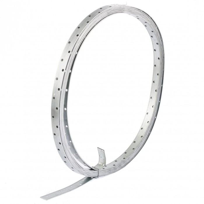 Перфорированная монтажная лента Сибртех 46579 с покрытием из цинка, толщиной 2 мм, шириной 2 см и длиной 10 м, с отверстиями диаметром 4,5-5 мм, предназначена для скрепления или усиления элементов строительных конструкци...