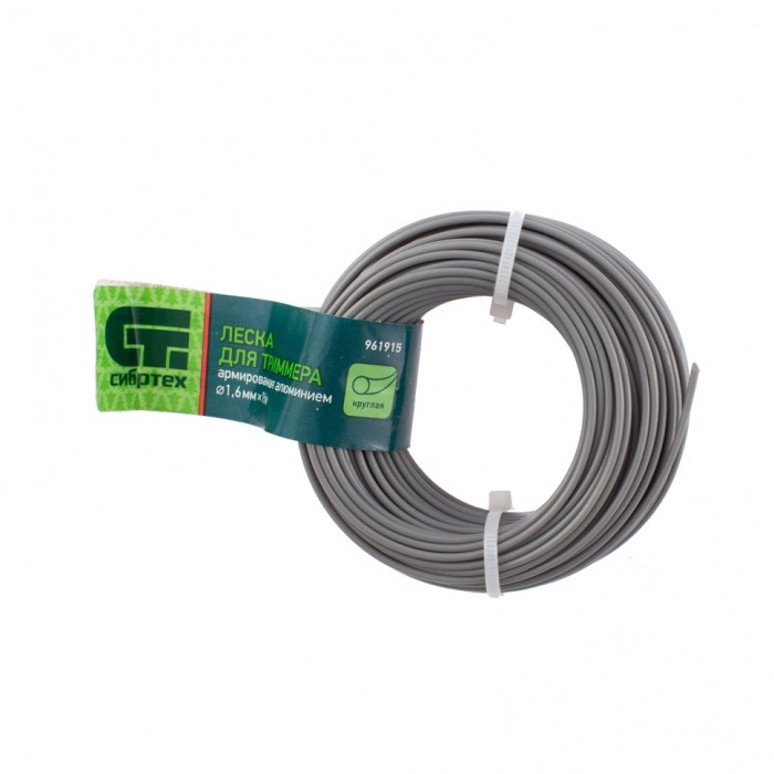 Леска для триммера круглая, армированная алюминием, 1.6 мм х 15 м, Сибртех