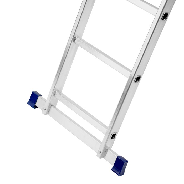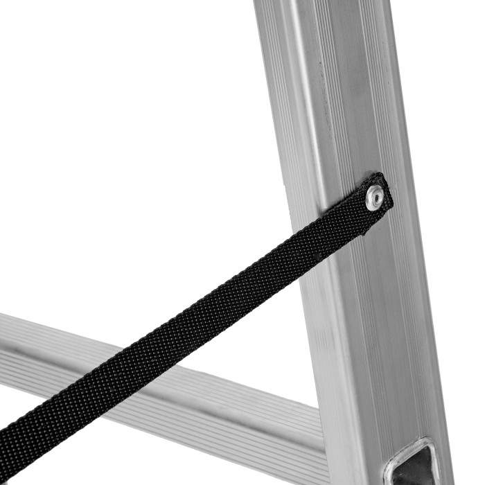 Алюминиевая двухсекционная лестница Сибртех 97911 состоит из 2 секций по 11 ступеней каждая. Легкая и прочная, она используется в качестве двухсторонней стремянки, предназначена для бытового и полупрофессионального применения.Преимущества3 рабочих положения — стремянка, двухсторонняя стремянка, приставная лестница с одной или двумя секциями.Надежность — рама, изготовленная из алюминиевого профиля прямоугольного сечения методом прессования, выдерживает нагрузку до 150 кг, страховочные стяжки увеличивают прочность конструкции.Устойчивость — благодаря съемному стабилизатору лестница ровно стоит на горизонтальной поверхности.Защита напольного покрытия — пластиковые заглушки на ножках предотвращают появление царапин.Безопасность пользователя — на профилированных ступенях имеется противоскользящее рифление, также предусмотрены ограничители безопасности по максимальной высоте.Простая и компактная конструкция — лестница быстро собирается и разбирается, не занимает много места при хранении и транспортировке.Внешний вид товара может незначительно отличаться от указанного на изображении, что не влечет изменения его качества.
