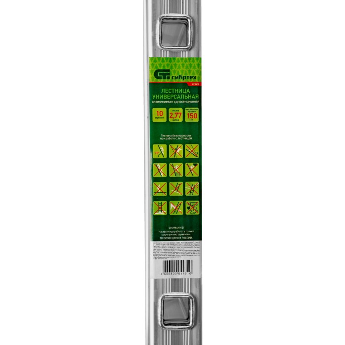 Приставная лестница Сибртех 97830 с 10 ступенями не требует сборки — она готова к использованию сразу после приобретения. Будет полезна в различных сферах, начиная от бытового применения, заканчивая эксплуатацией коммунальными службами и работниками магазинов.ПреимуществаНадежность — рама выполнена из легкого, но прочного алюминиевого профиля прямоугольного сечения, способного выдержать нагрузку до 150 кг.Коррозионная стойкость — лестница из алюминиевого сплава не боится воздействия влаги.Безопасность пользователя — на каждой ступени имеется противоскользящее рифление.Защита напольного покрытия — пластиковые заглушки с рифлением не скользят и не оставляют царапин.Внешний вид товара может незначительно отличаться от указанного на изображении, что не влечет изменения его качества.