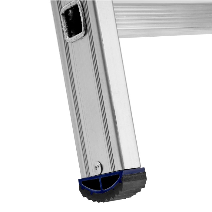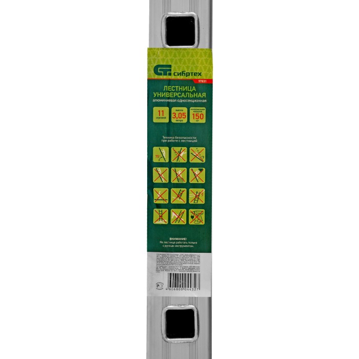 Приставная лестница Сибртех 97831 с 11 ступенями не требует сборки — она готова к использованию сразу после приобретения. Будет полезна в различных сферах, начиная от бытового применения, заканчивая эксплуатацией коммунальными службами и работниками магазинов.ПреимуществаНадежность — рама выполнена из легкого, но прочного алюминиевого профиля прямоугольного сечения, способного выдержать нагрузку до 150 кг.Коррозионная стойкость — лестница из алюминиевого сплава не боится воздействия влаги.Безопасность пользователя — на каждой ступени имеется противоскользящее рифление.Защита напольного покрытия — пластиковые заглушки с рифлением не скользят и не оставляют царапин.Внешний вид товара может незначительно отличаться от указанного на изображении, что не влечет изменения его качества.