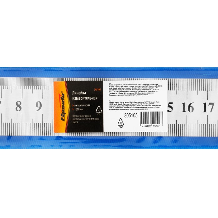 Металлическая измерительная линейка Sparta 305105 с пределом измерения 1000 мм предназначена для определения размеров деталей, разметки поверхностей и начертания прямых линий. Используется преимущественно во время строительства и ремонта, проектирования, занятий творчеством, в металлообработке, будет полезна дома и в гараже.ПреимуществаПрочность и долговечность — линейка изготовлена из инструментальной легированной стали, устойчивой к деформациям и повреждениям.Четкая разметка — шкала нанесена методом травления, поэтому не сотрется даже при активной эксплуатации.Удобство при использовании — линейка имеет двойную шкалу, что упрощает выполнение измерений.